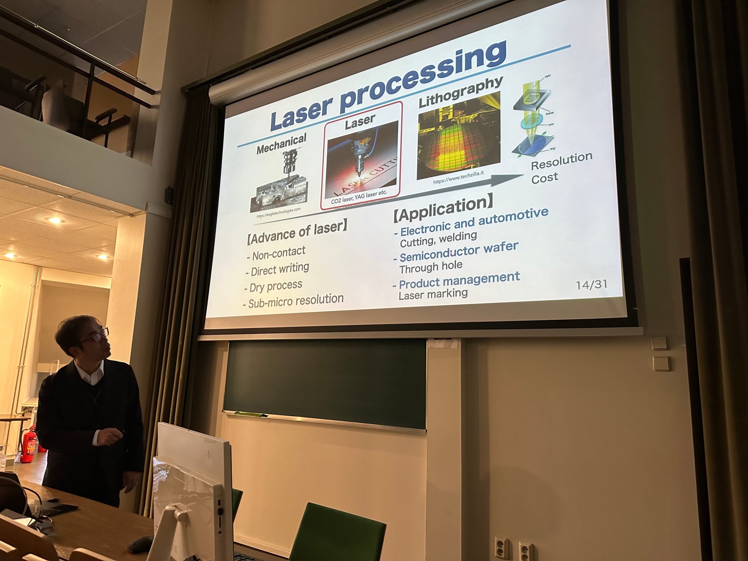During his visit, he gave a seminar titled “Computer-generated holography for laser microfabrication”, presenting the latest developments in laser microfabrication using CGH and demonstrating how this technique enhances precision, efficiency, and flexibility in laser processing.